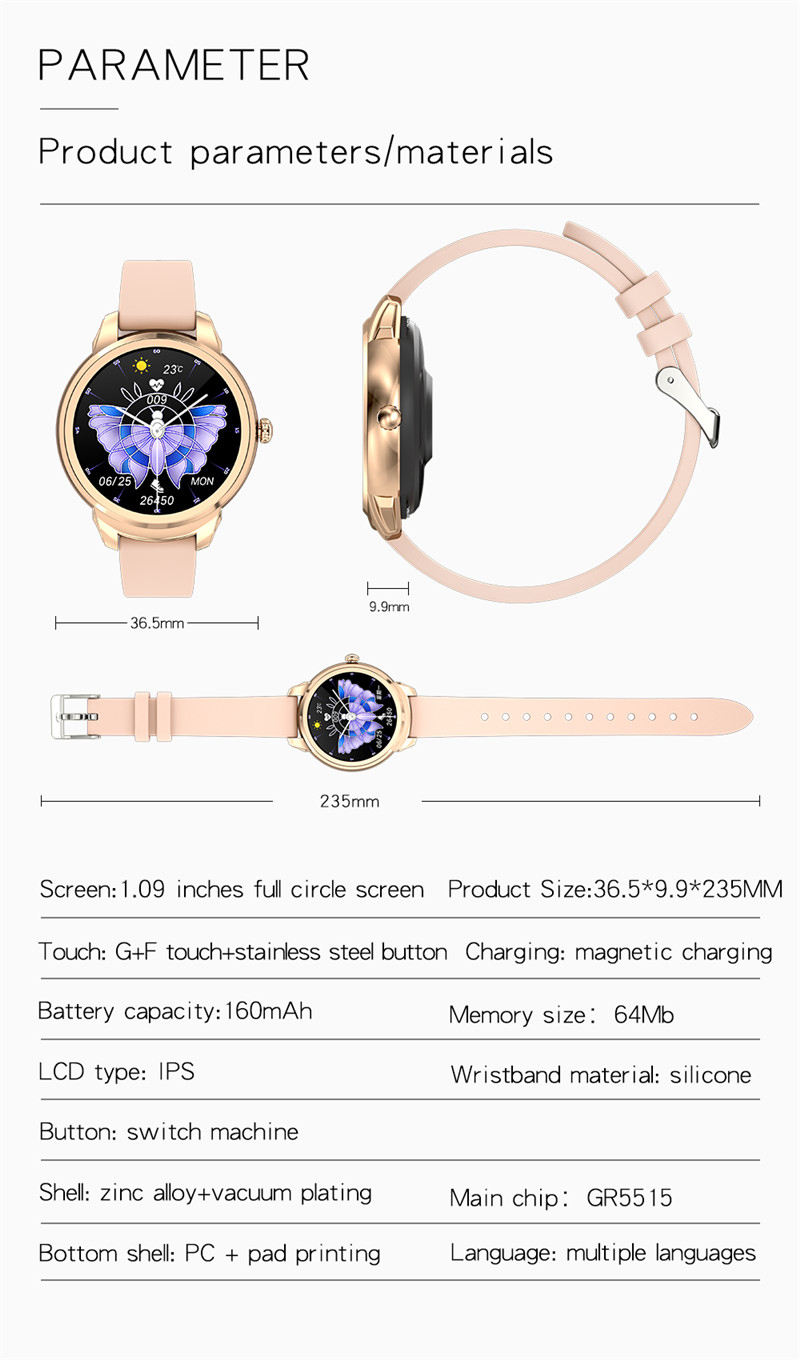 Z pametna žensko uro MPL160 lahko spremljate svoj srčni utrip, prejemate opozorila iz pametnega telefona ter sledite svojim korakom, razdalji in porabljenim kalorijam.