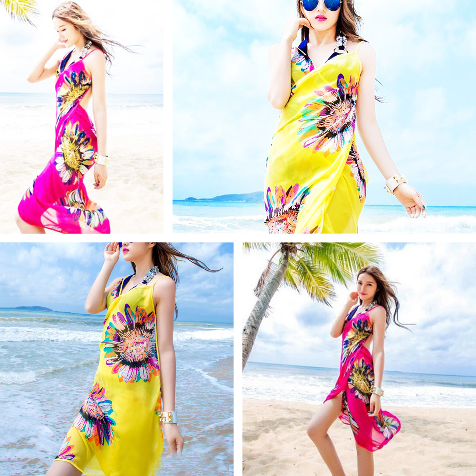 Lahka poletna oblekica s potisnjenim vzorcem, ki je čudovita modna popestritev za vaše kopalke. Potisk je zabaven, svetel in barvit.