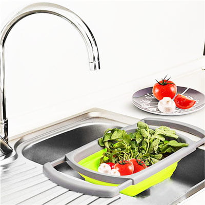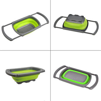 Uporabno silikonsko cedilo, s katerim si prihranite čas in olajšate delo v kuhinji. Idealna rešitev predvsem za manjše kuhinje. Silikonski kolut ima podaljšane prilegajoče ročke in pa dno (večja kapaciteta od navadnih cedil), ki se zloži (iz 17 cm velikosti na 26 cm). Priročna in ergonomična oblika sita je odlična za izpiranje sadja in zelenjave, testenin, riža in ostale konzervirane hrane. Varna uporaba silikonskega materiala brez BPA in zato enostavno za čiščenje tudi v pomivalnem stroju. Z ročaji za popolno oprijemljivost in stabilnost ga namestite na čisto vsak umivalnik.