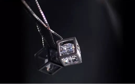 Elegantna verižica Kocka iz pravega srebra z bleščečim diamantom znotraj je čudovit dnevni ali večerni dodatek.