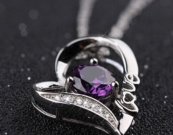 Elegantna verižica Srček iz pravega srebra z bleščečim vijoličnim diamantom je čudovit dnevni ali večerni dodatek.